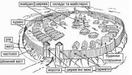 Сама Запорозька Січ — це місто-фортеця. На території фортеці зазвичай розміщувались площа, церква, курені, комори, адміністративні споруди. Стіни фортець запорозьких козаків були з насипів земляних валів і дерев’яних укріплень( Засічені зверху колоди)
