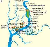 Давайте зараз розглянемо карту. На річці Дніпро знаходиться 7 порогів (де які з них було висотою до 7 метрів), і сами за цими порогами від Хортицій далі уздовж Дніпра розкинулась смуга дніпровських плавнів – так зване Дике поле, площа якого була понад 400 км квадратних.