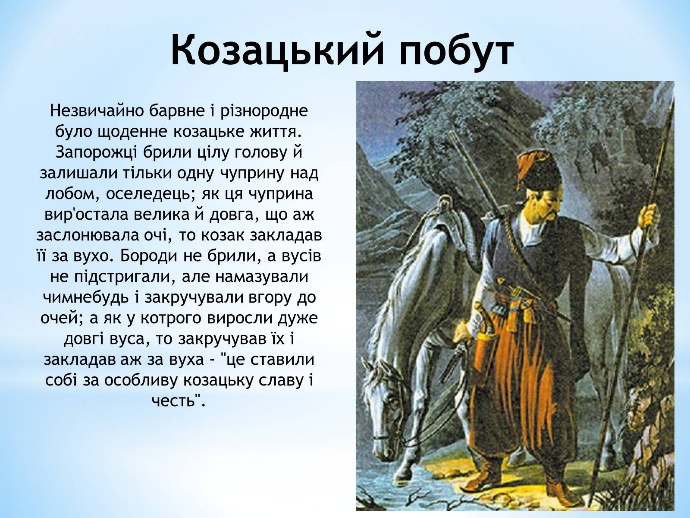 Тема. Запорозька Січ — козацька республіка. Соціальна організація, побут і військова майстерність українського козацтва