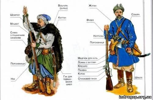 перекладі а латинської «футляр для меча»). Носили їх при лівому боці й прив’язували за два кільця: одне вгорі, а друге нижче середини, вузеньким ремінцем за пояс. У Літописі Самійла Величка зазначено, що козаки володіли всією своєю зброєю з вражаючою майстерністю. Готуючись до бою, вони будували вали, дерев’яні укріплення.
